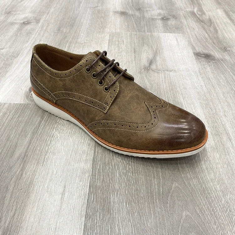Carved design men's casual shoes straps PU shoes British style everyday wear men's shoes