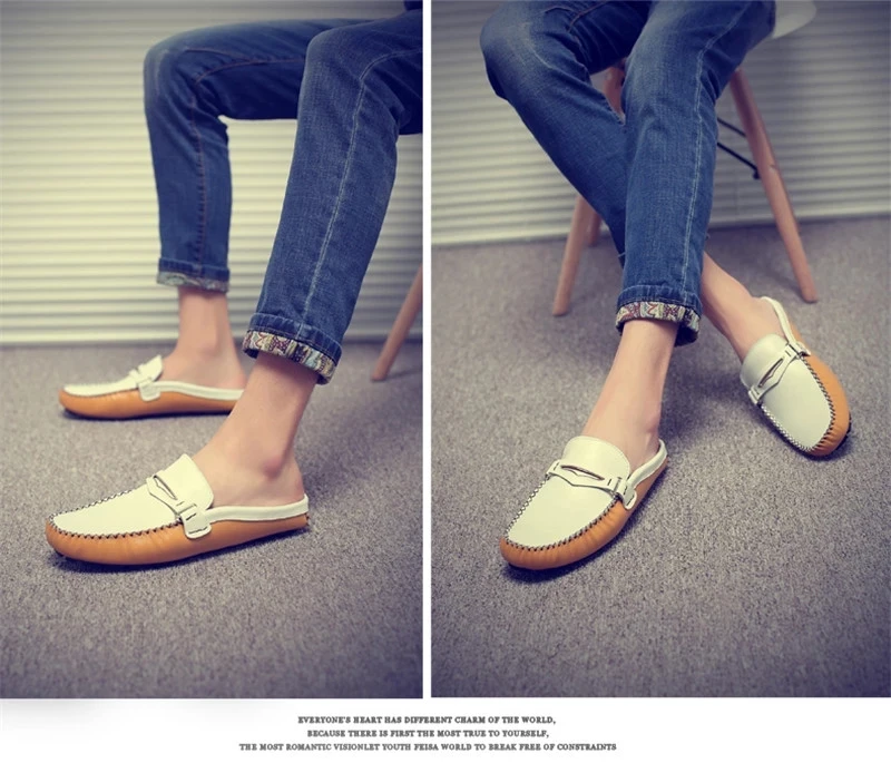 Designer Slipper Men Casual Shoes Luxury Brand High Quality Genuine Leather Slipper men's Loafers Summer Half Shoes