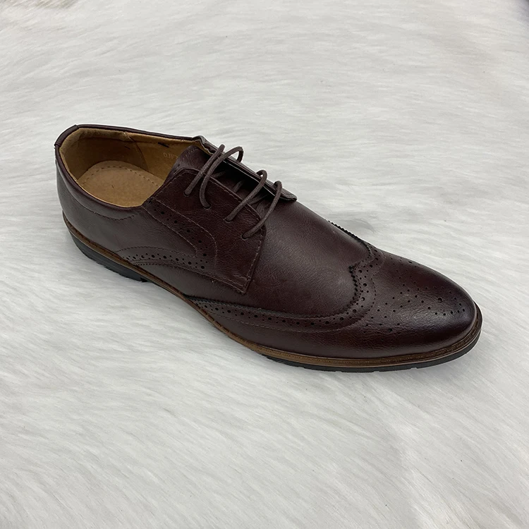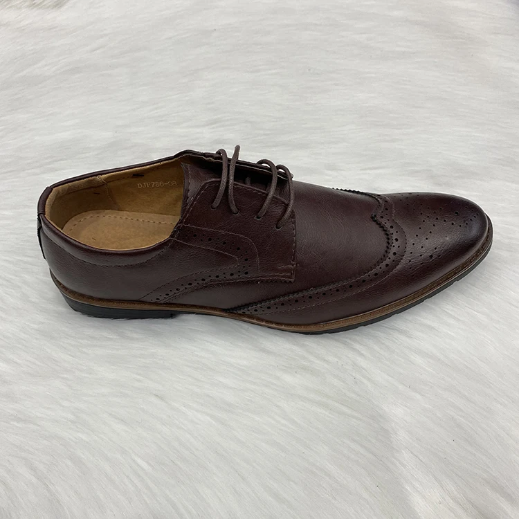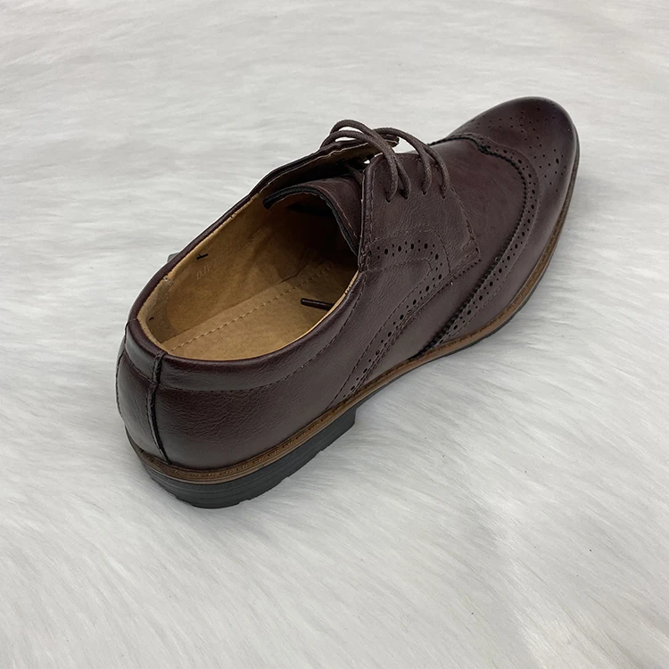 Factory custom men's pointed leather shoes, carved lace-up leather shoes, men's solid color business leather shoes