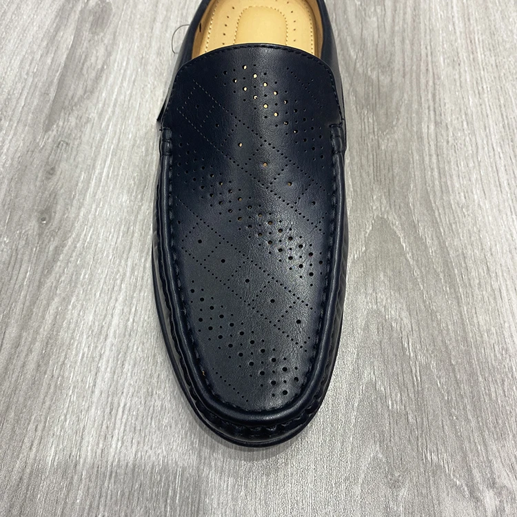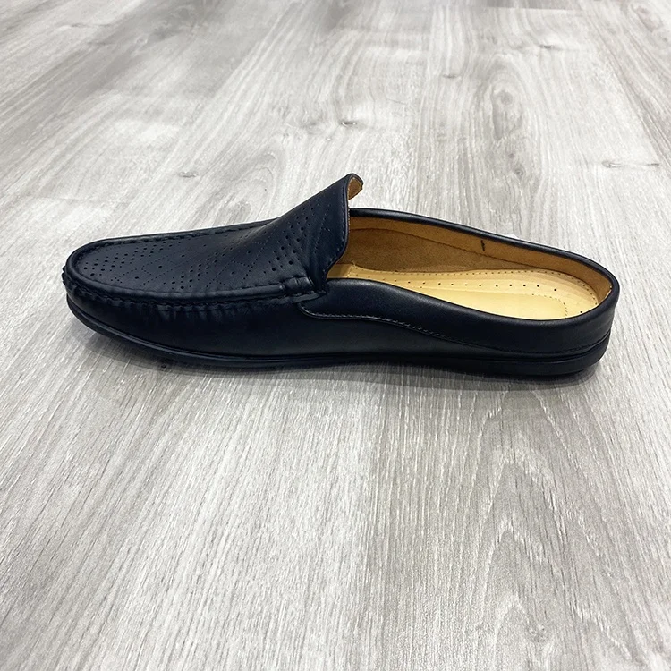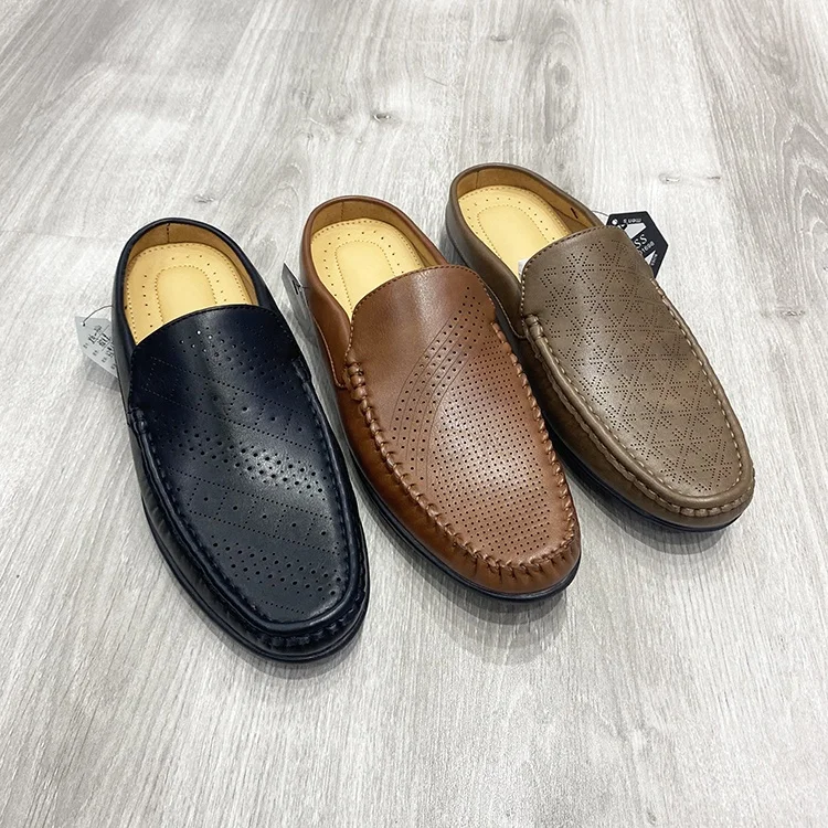 Factory custom men's simple flat outdoor men's hollow design leather slippers Carved design men's casual half drag