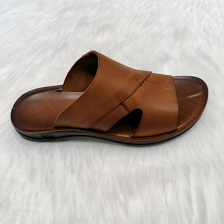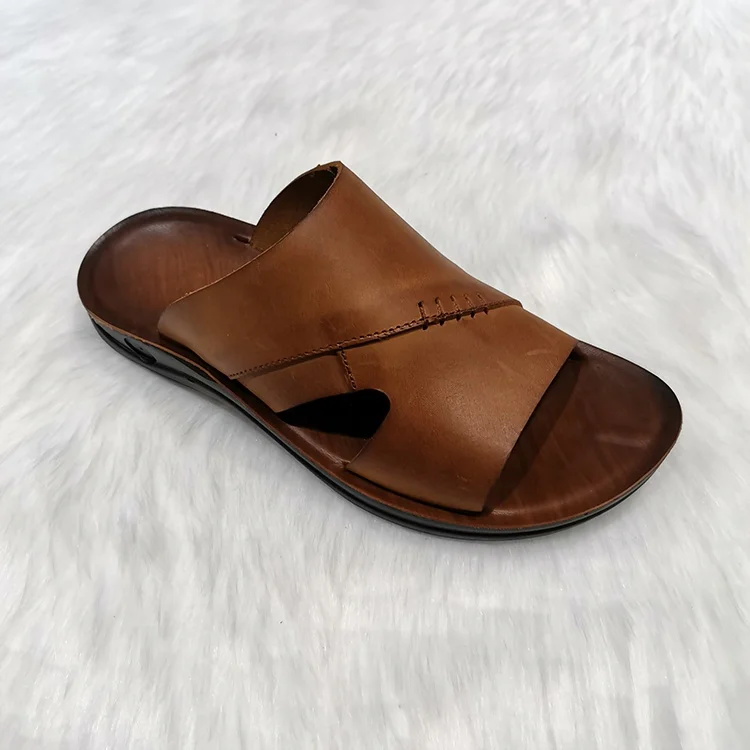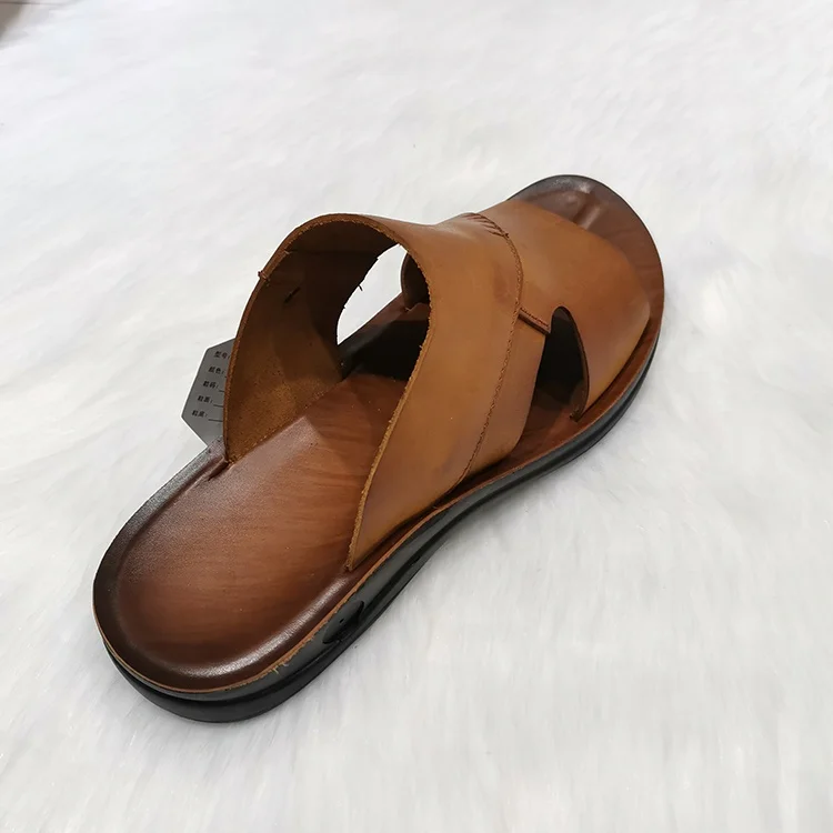 Factory customized genuine leather beach slipper men's casual slippers fashionable soft sole men's leather slippers