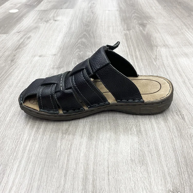 Manufacturers custom outdoor leather men's slippers men's self-adhesive buckle slippers hollow out breathable open-toe male slip