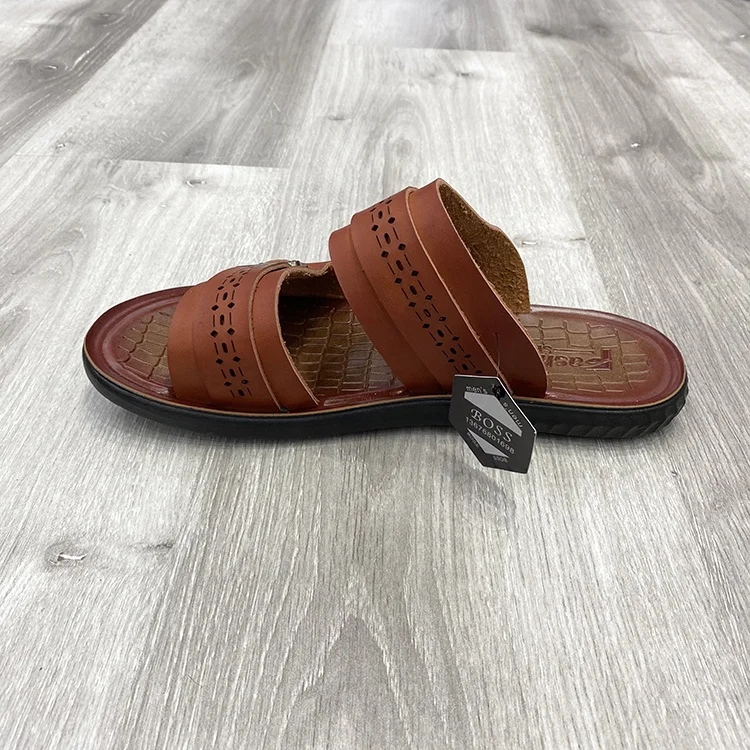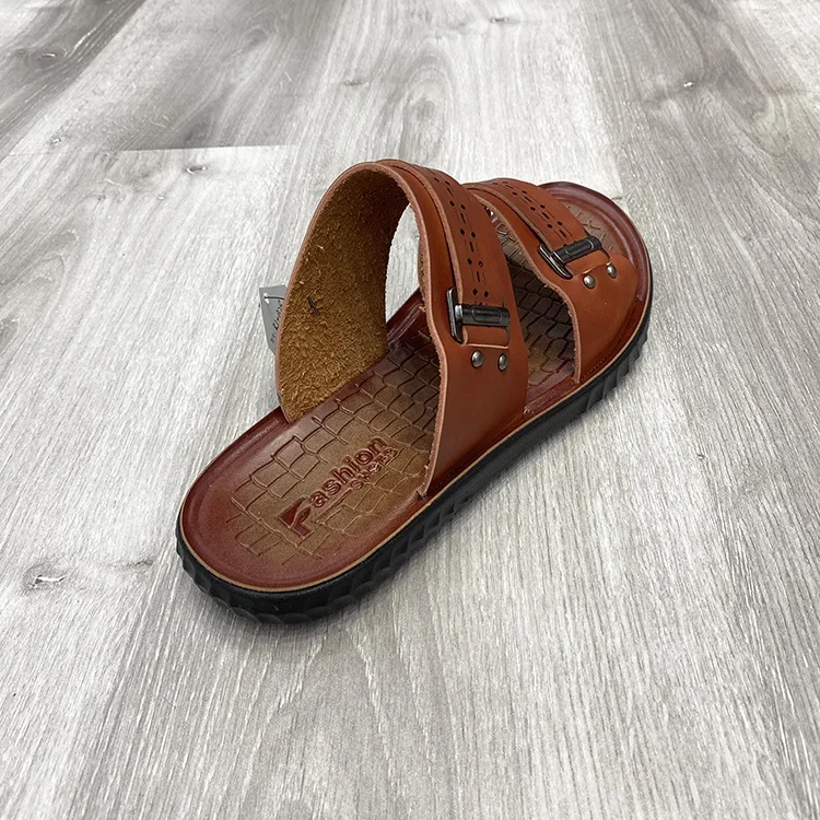 Men's fashion slippers carved hollow strip double buckle style men's slippers