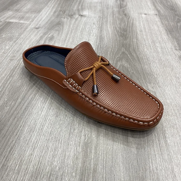 New fashion custom men's half shoes lace soft leather outdoor men's shoes two-color TPR sole casual men's shoes